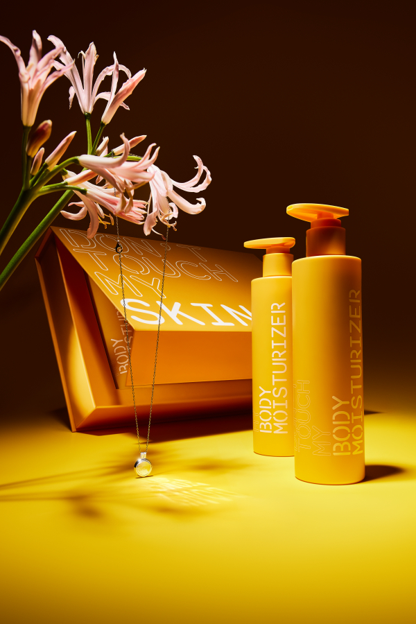 JOURNEY помогли это сделать нежно и концептуально. Внутри подарочного набора новое гель-масло, крем для тела, открытка и кулон с отцвечивающейся надписью Don't Touch My Skin. Кадры со съемки набора буквально переносят нас в теплую весну, а фирменные цвета бренда отсылают к телесности, умиротворению и природе.