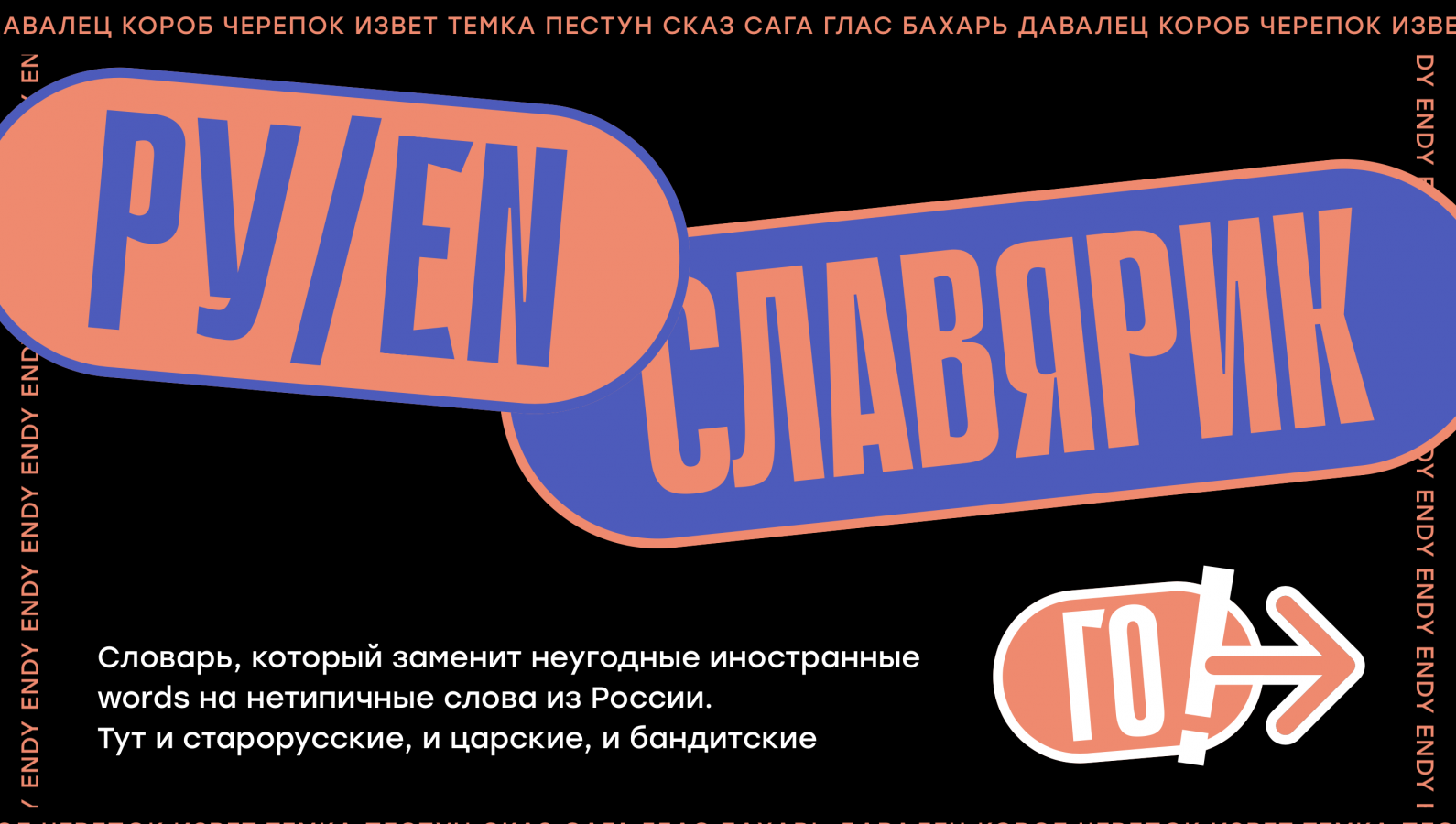 В связи с принятием поправок к законопроекту о защите русского языка в брендинговом агентстве ENDY создали специальный словарь для рекламистов. В «Славярик» включили несколько самых популярных англицизмов и подобрали к каждому из них по три аналога из разных исторических эпох в истории России. Туда вошли и старорусские слова, и жаргоны из 90-х, и стандарная лексика.