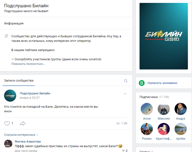 Правда, полностью все данные из соцмедиа получить не удастся — сервис работает только с публичным контентом. Он не может выгружать данные из закрытых и секретных групп, которые наверняка создают сотрудники крупных компаний. Но хватает и открытых. Вот как выглядят, например, некоторые из них с типовым названием «Подслушано <имя_бренда>»