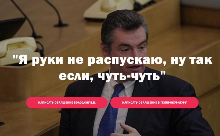 Журналистка Алена Попова решила по-другому бороться со сложившейся ситуацией. Совместно с коллегами она создала сайт против домогательств депутата Госдумы от ЛДПР Леонида Слуцкого. На сайте можно написать обращение в Генпрокуратуру, написать обращение спикеру Госдумы Вячеславу Володину, подписать петицию, чтобы в отношении Слуцкого начали расследование, а также посмотреть, какие вносились законы, что предлагалось и что предлагается сейчас.