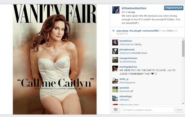 Известный американский легкоатлет, олимпийский чемпион 1976 года в десятиборье Брюс Дженнер, который приходился отчимом Ким Кардашьян, в конце апреля этого года перенес операцию по смене пола, после чего дал интервью Vanity Fair и снялся для обложки журнала. Брюса поддержала вся семья Кардашьян, телеканалы, газеты, а благодаря интервью, экс-спортсмен обзавелся армией поклонников.