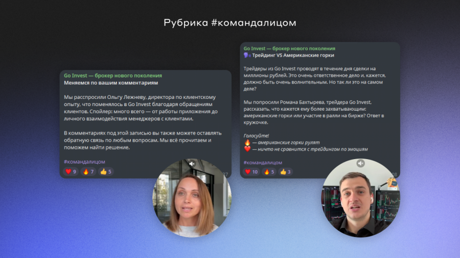 Изначально мы сделали ставку на активных трейдеров. Хотели создать комьюнити экспертов для нетворкинга и обмена опытом. На этом этапе определили, что бренду нужны ценности, и сформулировали их так: «Go Invest — это канал для опытных и технологичных инвесторов».