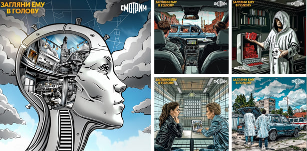 На канале в Telegram и в официальном сообществе «ВКонтакте» медиаплатформы «Смотрим» был создан детективный чат-бот в виде квеста, при производстве которого использовались нейросети. Контент бота состоит из анимированных ИИ-аватаров главных героев сериала и статичных иллюстраций, которые также были сгенерированы с помощью нейросети.