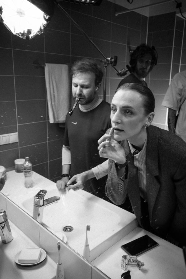 Обычно на съемках просят все идеально разложить, погладить вещи. А мы наоборот: давайте растянем свитер, посуду грязную оставим на столе, раскидаем полотенца. Нам хотелось добавить жизни в каждый сеттинг и образ героев. И оказалось, что такой жизненный беспорядок в кадре — не всегда можно вынести, когда ты много лет работаешь в рекламе. Нужно, чтобы картинка казалась знакомой в деталях, правдивой, но при этом не отталкивала. И для этого недостаточно просто разбросать вещи! Нужно быть наблюдательным, честным с самим собой, убедительным и искать баланс между задачей и эстетикой.