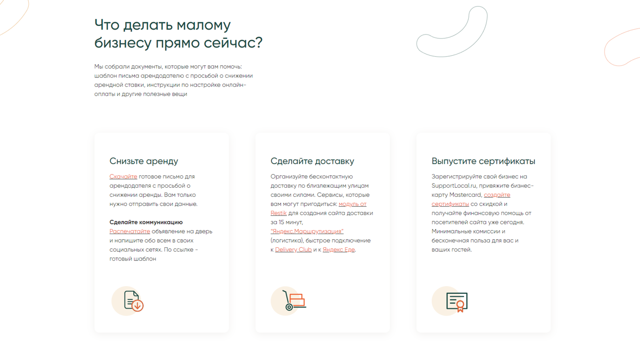 В партнерстве с маркетологом, ресторатором и автором Telegram-канала «СысоевFM» Александром Сысоевым, Inshaker и Payture мы создали платформу Support Local, которая помогла объединить локальный малый бизнес и преданных потребителей, желающих видеть свои любимые заведения открытыми после кризиса. На сайте спецпроекта была представлена карта с адресами бизнеса, где пользователи могли купить онлайн депозитную или клип-карту и заказать бесконтактную доставку.