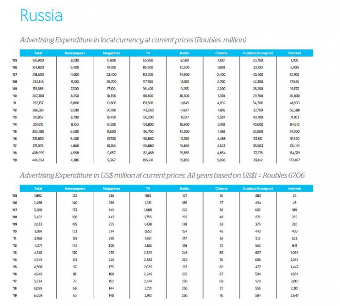 Экономические условия в Латинской Америке улучшаются: Бразилия вышла из самой продолжительной рецессии с 1930-х годов, в то время как Аргентина, наконец, взяла под контроль инфляцию, и экономика этой страны начинает восстанавливаться. Центральная и Восточная Европа набирает обороты с момента введения санкций против России в 2015, которое оказало влияние и на смежные рынки. В этом году мы прогнозируем рост рекламных расходов на 4,1% в Латинской Америке (в 2016 году там наблюдалось падение на 0,2%), а также рост на 7,3% в Центральной и Восточной Европе (по сравнению с ростом на 4,1 % в 2016 году).