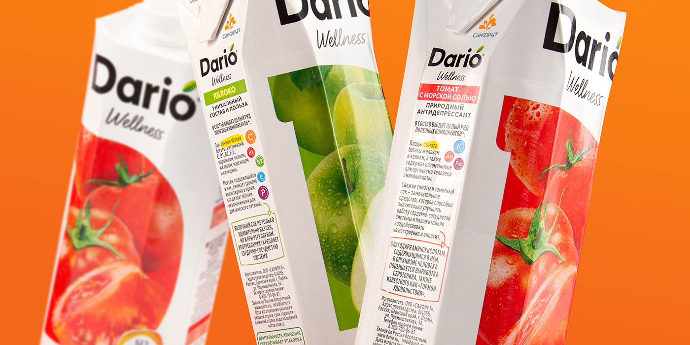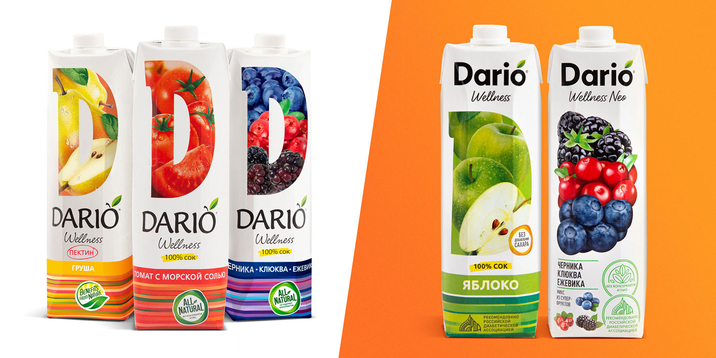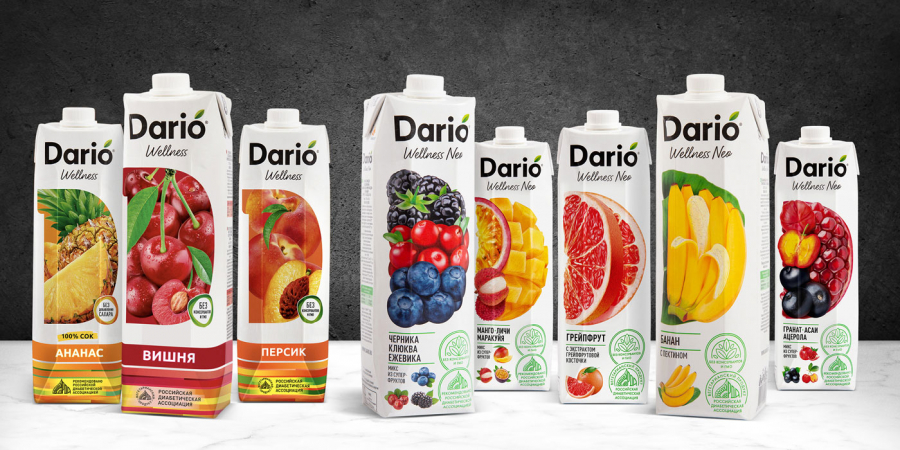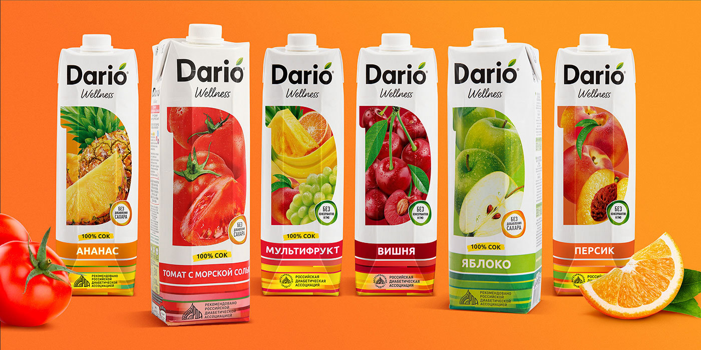 Под торговой маркой Dario производятся функциональные соки и нектары, которые полезны для здоровья не только за счет природных свойств входящих в них фруктов и ягод, но и благодаря специальным добавкам витаминов, микроэлементов, пектина и других веществ с доказанной пользой. Кроме того, все соки в линейке Dario производятся без добавления сахара, что подтверждено Российской Диабетической Ассоциацией.