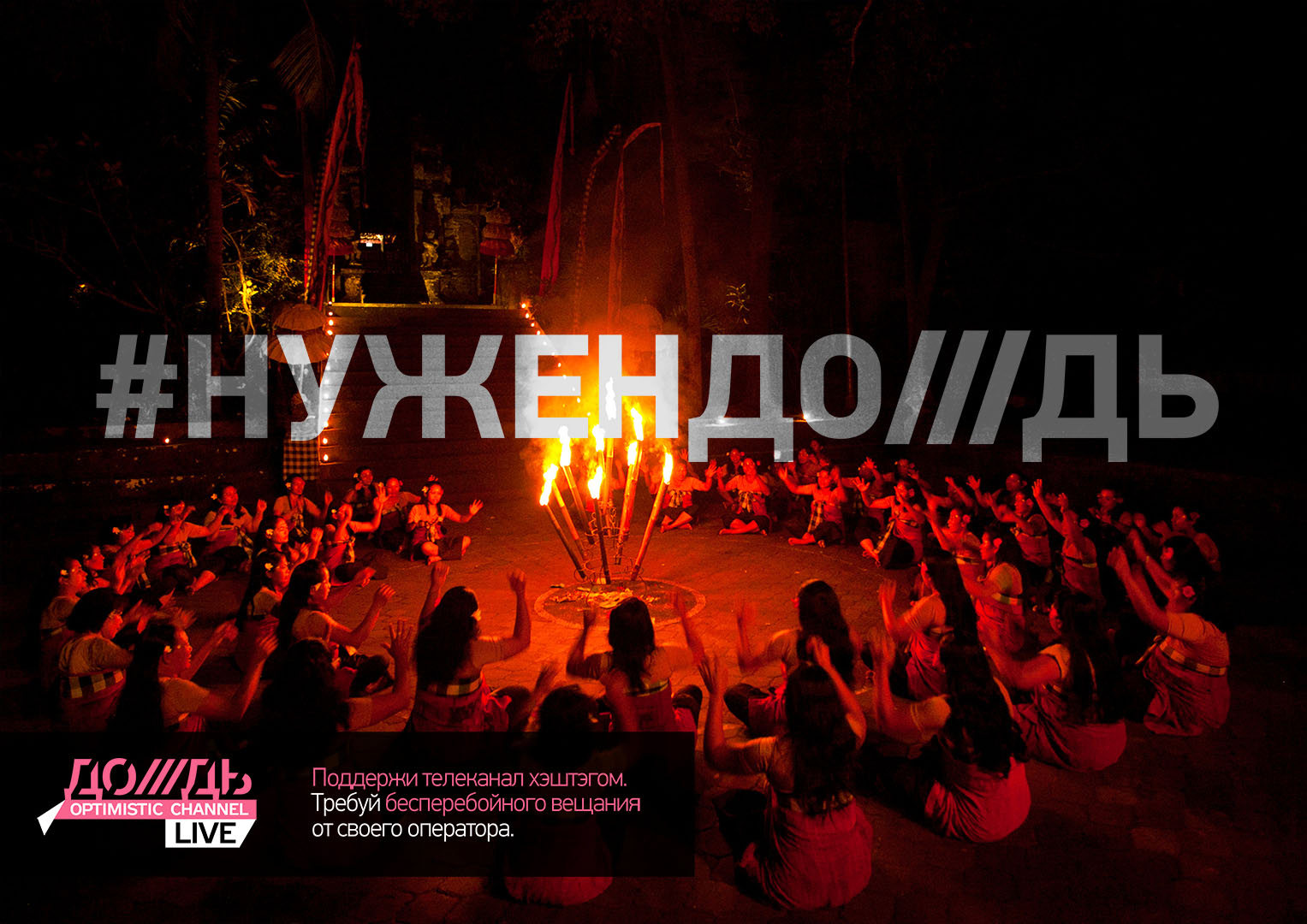 «Серия принтов ассоциирует усилия зрителей с усилиями шаманов, вызывающими дождь, - рассказал аккаунт - директор Сергей Ковалев. - Такое сравнение, по нашему замыслу, одновременно показывает силу каждого отдельного зрителя и абсурд ситуации, когда для обеспечения свободного доступа к телеканалу требуется применять усилия, сравнимые с магией».