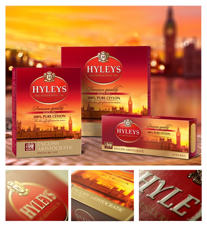 Доминантой и главным акцентом в упаковке бренда HYLEYS стал логотип. В ходе рестайлинга его размер был увеличен, а дизайн модернизирован за счет применения тенденций современной графики. Перетекание сверху красного фона в мистический лондонский пейзаж создали ощущение продукта с большой и интересной историей, вовлекая целевую аудиторию в игру открытия чего-то нового и непознанного. Изображение Вестминстерского Дворца, главной достопримечательности Лондона, отсылает потребителя к восприятию чая HYLEYS как продукта высшего качества. Ведь именно в Англии качество чая – самая важная составляющая традиционного английского чаепития.