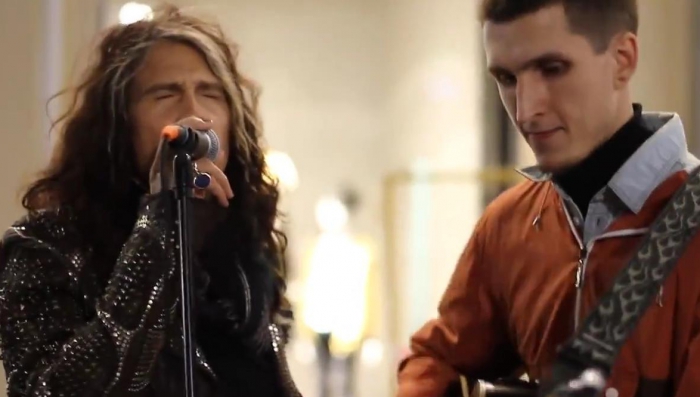 Лидер Aerosmith сначала просто слушал, как молодой человек исполняет на акустической гитаре главный хит бостонской пятерки - песню "I Don't Want Miss A Thing". В какой-то момент Тайлер вышел к микрофону, получив щедрую порцию оваций, и подпел юному исполнителю. Интернет-пользователи выложили несколько роликов с "уличным" выступлением, все они набрали десятки тысяч просмотров.