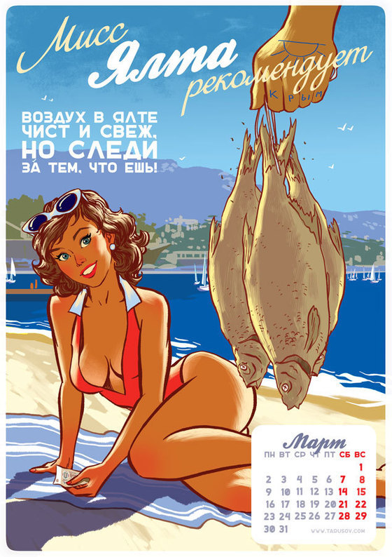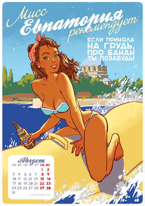 Пока в Москве стремительно холодает, дизайнер и иллюстратор Андрей Тарусов нарисовал и представил яркий Пин-ап календарь «Осторожно, Крым!». Основная тема календаря - это достопримечательности Крыма, которые художник не просто ярко представил на страницах календаря, но и разбавил небольшими, но очень важными и полезными советами для туристов.