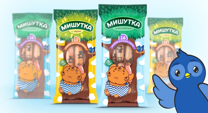 Сосиски «Мишутка» на рынке довольно давно и уже стали именем нарицательным, к тому же их легко идентифицируют по фирменному паттерну из медвежат, нанесенному на оболочку продукта методом натурального копчения на буковой щепе. Поэтому новый дизайн необходимо было сделать, с одной стороны, преемственным, а с другой - запоминающимся, привлекательным и «свежим», в ярких красках и с позитивной коммуникацией.