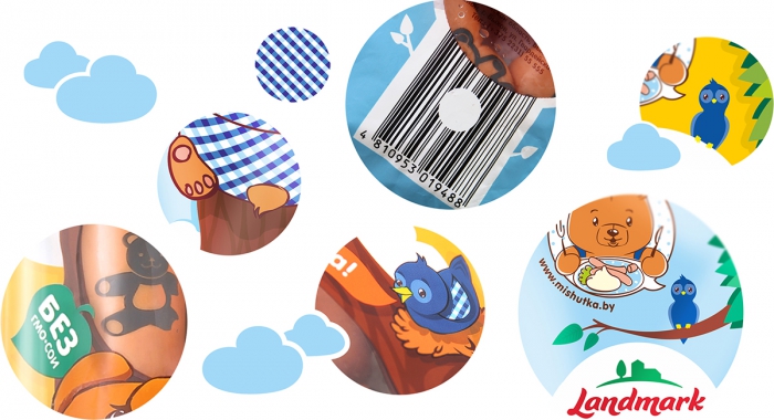 Так появился бренд-персонаж Мишутка в штанишках в фирменную сине-белую клетку. Последняя стала хорошо узнаваемым визуальным маркером торговой марки и обязательным элементом дизайна всей линейки продуктов. Созданный иллюстраторами Fabula Мишутка - спокойный и дружелюбный, любит исследовать мир вокруг и готов стать верным другом для каждого. Его образ чрезвычайно благоприятен для рекламного продвижения продукта, считают авторы проекта: он располагает к себе, развлекает, вызывает улыбку и доверие.