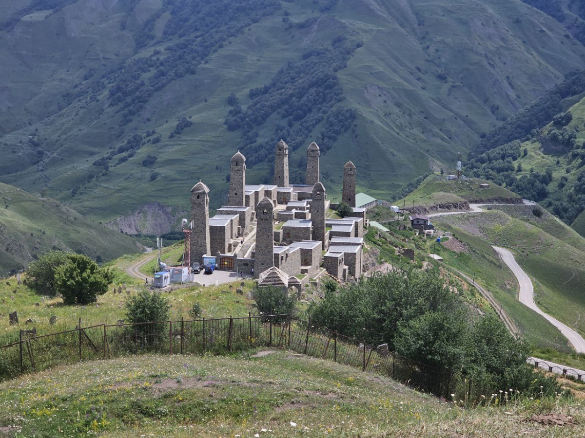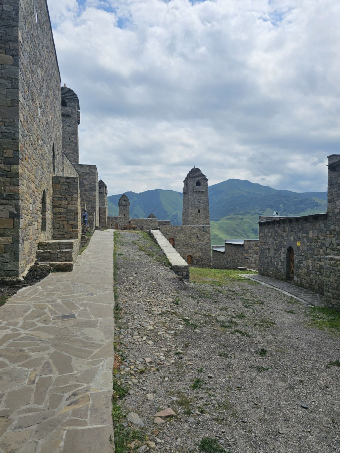 Во время экскурсии гид рассказывает, что в древности из маленьких окошек боевых башен чеченцы кидали камни. Они отскакивали от стены и приземлялись аккурат на голову незваным гостям. Всем хочется проверить, и коллеги спускаются по пригорку в башню. Следую за ними, вспоминая, что спускаться с гористой местности надо быстро, так меньше шансов свалиться. Подниматься — легче, но лучше всего делать и это быстрыми шагами. Порода под ногами ломкая. Времени на раскачку нет.