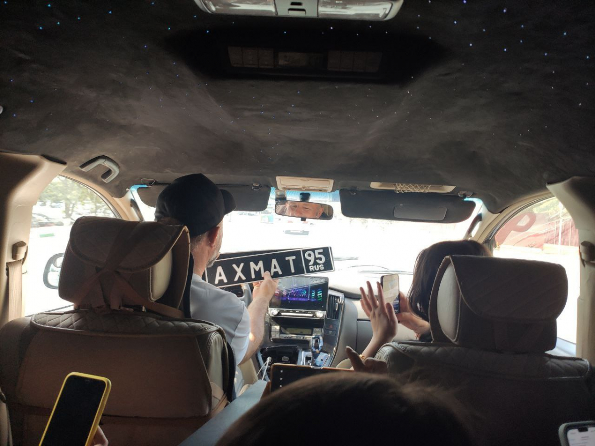 Позавтракав, садимся в автобус и вскоре въезжаем в Чечню. Блокпосты стилизованы под сторожевые башни. Справа — портреты Владимира Путина, Рамзана и Ахмата Кадыровых. Самое популярное словосочетание — «Ахмат — сила». По дороге водитель показывает номера авто, где вместо цифр указано просто — «Ахмат».