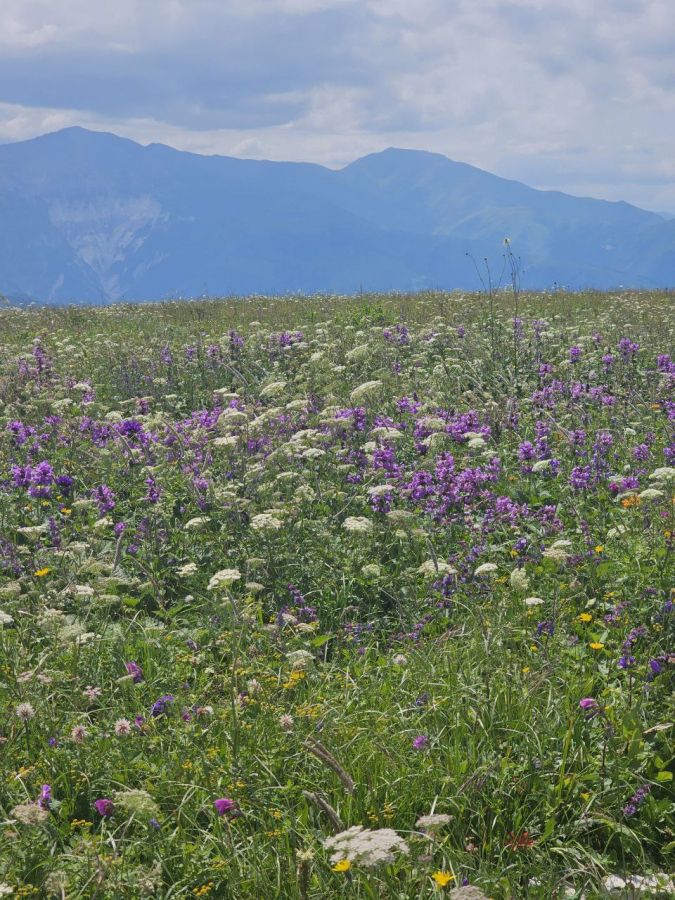 Ночуем тут же — в отеле «Эдельвейс» на высоте 1860 м. Впечатленная видами забываю, что в горах нет интернета и очень плохая мобильная связь. Мой молодой человек сумел дозвониться в ночи. Сонная объясняю, что все хорошо, никто меня не украл. Утром открываю дверь на балкон, и в нос ударяет густой аромат цветов. Это так прекрасно, что хочется плакать.