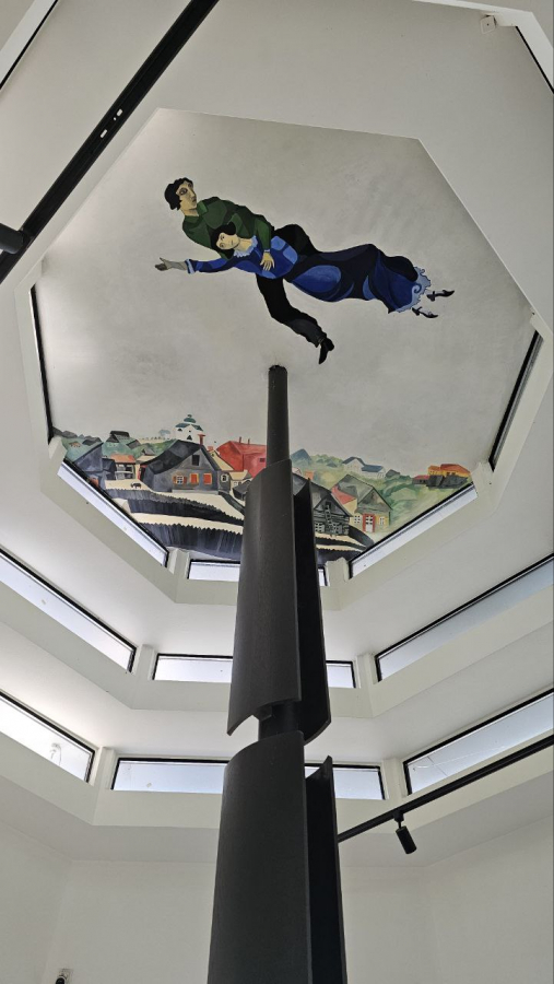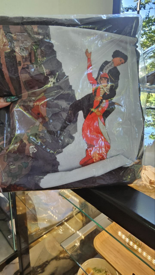 Прощаемся и у выхода встречаем Залину — нашего экскурсовода. Она проводит нас по парку, чтобы показать кафе «Горки». На потолке — картина «Над городом» Шагала. Тут же продают своеобразные сувенирные футболки — герои полотен Фриды Кало, Шагала, Ван Гога наряжены в осетинские костюмы. Залина несется так резво, что мы, разморенные жарой и утомленные перелетом, за ней не успеваем.