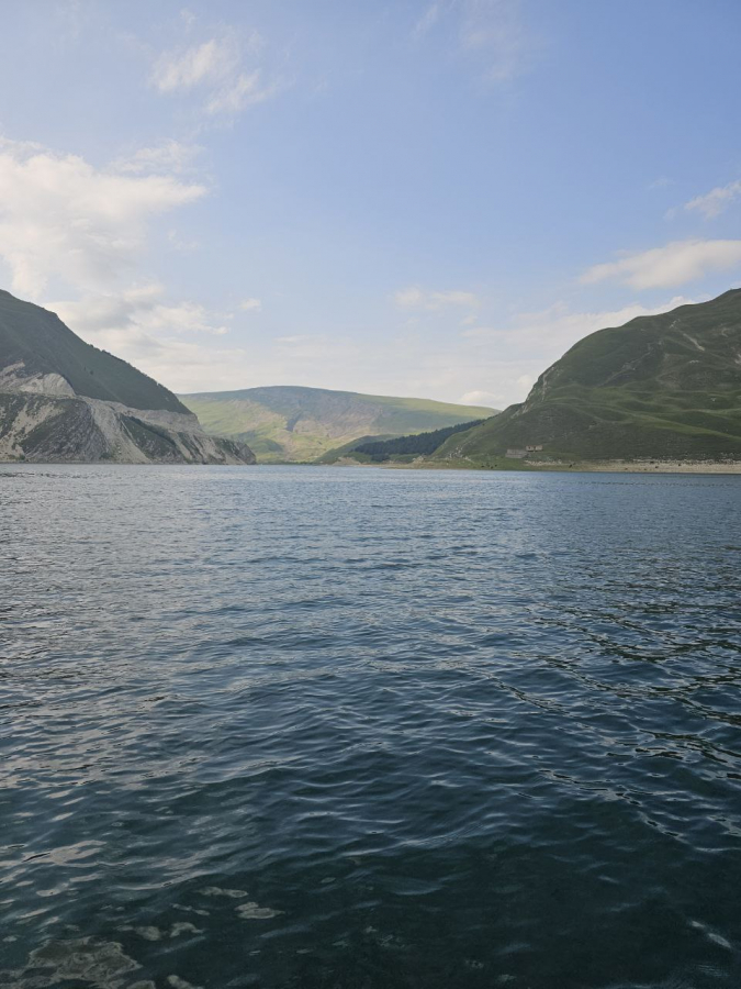 Впереди снова крутой серпантин и горы. Два часа пути и награда — невероятное по красоте озеро Кезеной Ам. Название переводится как «Жестокое озеро». Водитель делится: раньше на этом месте был аул Кезеной. Его жители были столь жестоки, что отдавали гостей на съедение собакам. Бог разгневался, и аул провалился в ущелье, а долину затопили дожди. Так и образовалось озеро.