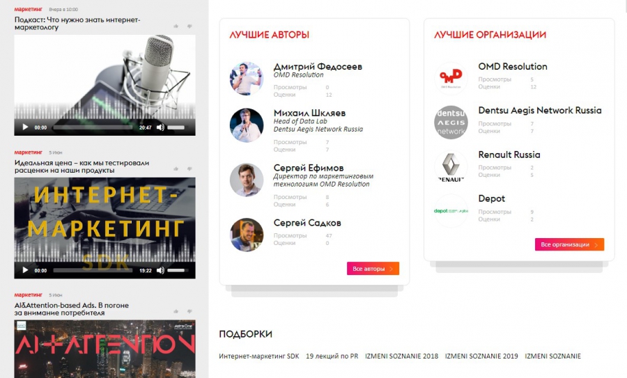 На платформе «Обучение» можно найти образовательные программы с фестивалей и конференций, аудио- и видеолекции, интервью, вебинары, презентации и многое другое.