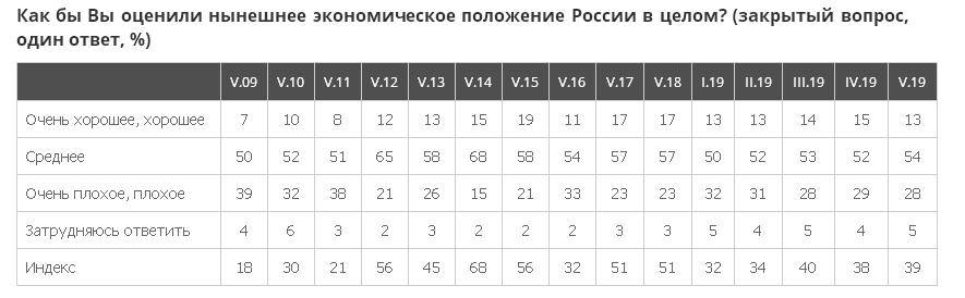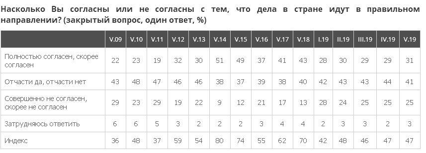 При этом экономическое положение России оценивают как среднее 54% участников опроса. 13% респондентов считают, что экономическая ситуация в стране выше среднего, 28% — ниже. 31% опрошенных граждан уверены, что дела в стране идут в правильном направлении. Отчасти с этим согласны 41%, еще 25% не согласны.