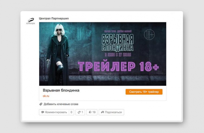 «Централ Партнершип всегда придерживается первенства в использовании новых рекламных технологий, которые помогают увеличить эффективность вложений в рекламные кампании кино. Новый инструмент Одноклассников показал отличные медийные показатели, а главное, помог увеличить конверсию во взаимодействие с рекламой — это позволяет изучать реакцию аудитории на разные креативы и отбирать только самые конвертируемые», - сообщила Наталия Грымова, директор по маркетингу Централ Партнершип.