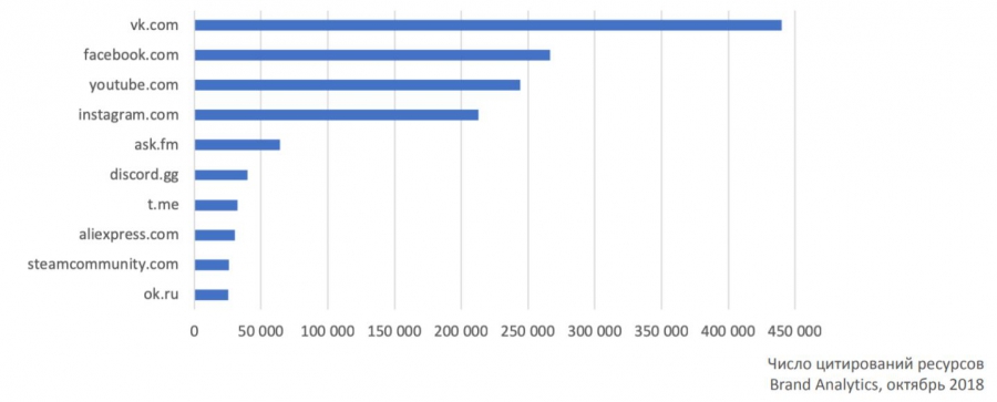 Несмотря на бурный рост Instagram, в молодежной среде он уступает по цитируемости YouTube, который востребован любителями поиграть. Блокировка не повлияла на популярность Telegram (t.me), но еще популярнее Discord.gg — текстовый чат для геймеров.