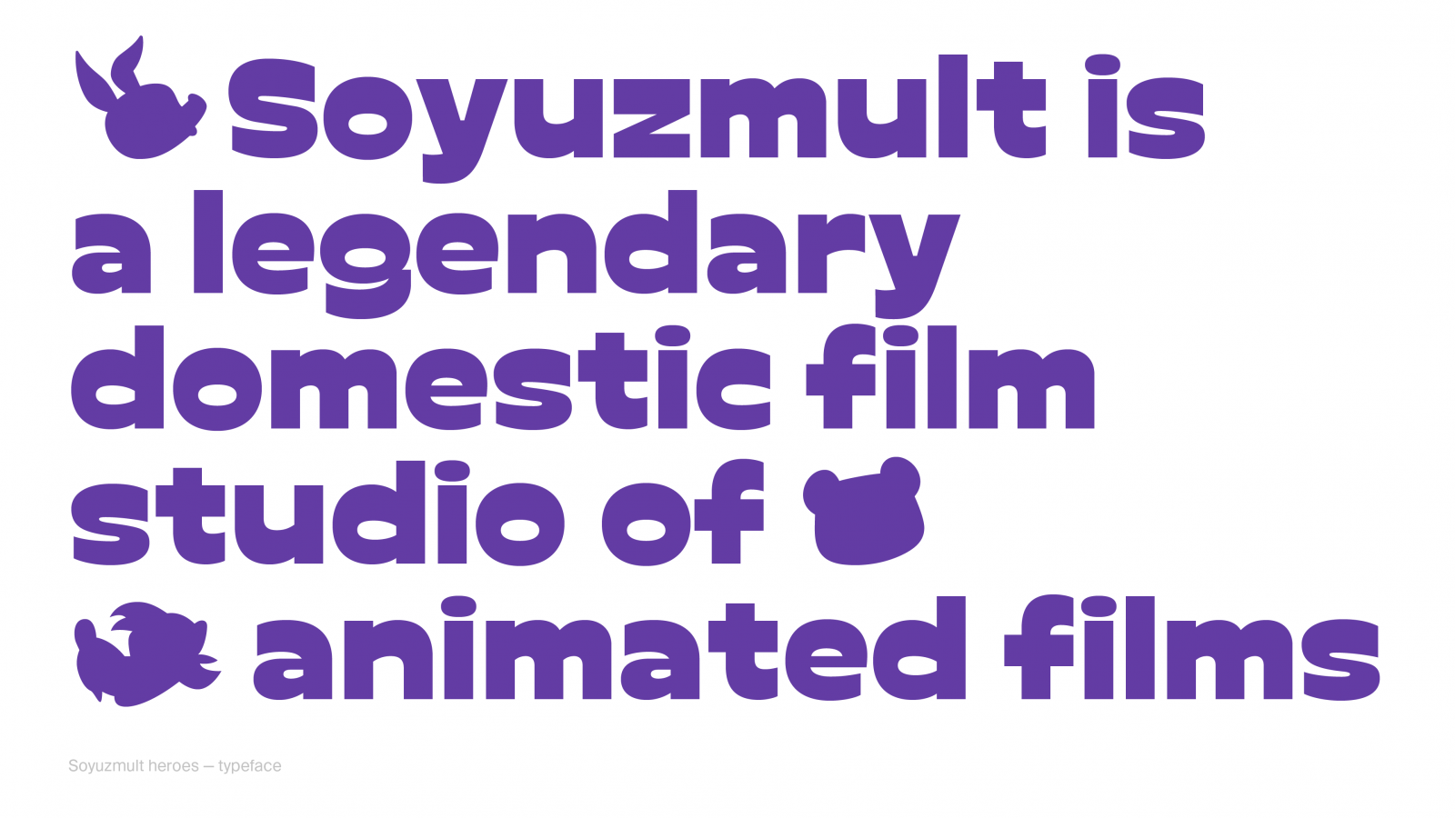 Новая айдентика студии выполнена на собственном шрифте Soyuzmult. Буквы шрифта похожи на оригинальные, но более пластичные, упругие и сбалансированные.