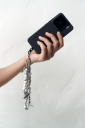 Аксессуар Poison Drop и «М.Видео» — украшение-трансформер, каждый его элемент можно использовать по-своему. Длинный плетеный шнурок-ланьярд из паракорда (технологичный материал, из которого, кроме украшений, делают стропы парашютов) позволяет носить телефон на шее или через плечо. А подвеску из горного хрусталя, жемчуга и говлита можно надеть и как брелок, и как браслет. Комплект дополняется замшевой ключницей и съемным медальоном с местом под фотографию.
