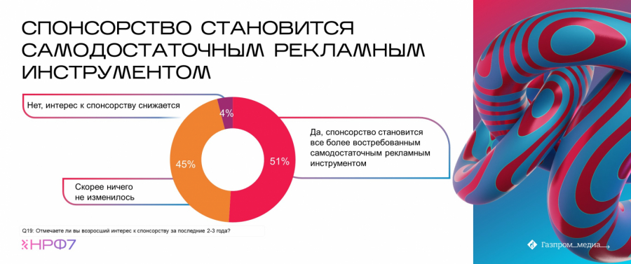 Более половины респондентов считают, что востребованность ТВ-спонсорства выросла за последние два года. 76% рекламодателей активно включают спонсорство в медиасплит своих брендов.