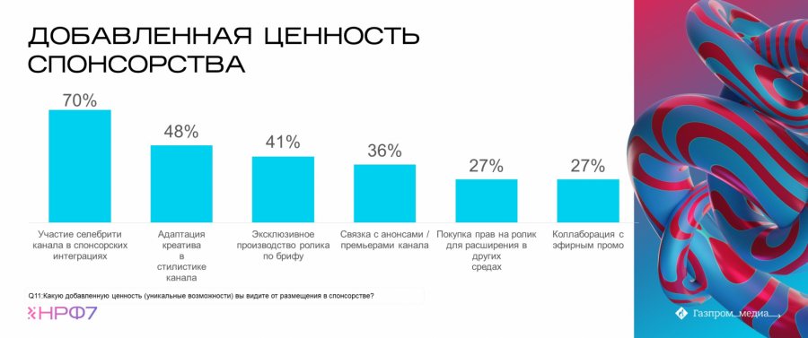 Участие селебрити, адаптация в стилистике канала, эксклюзивное производство ролика по брифу — выделяются рекламодателями в качестве основной добавленной ценности спонсорства.