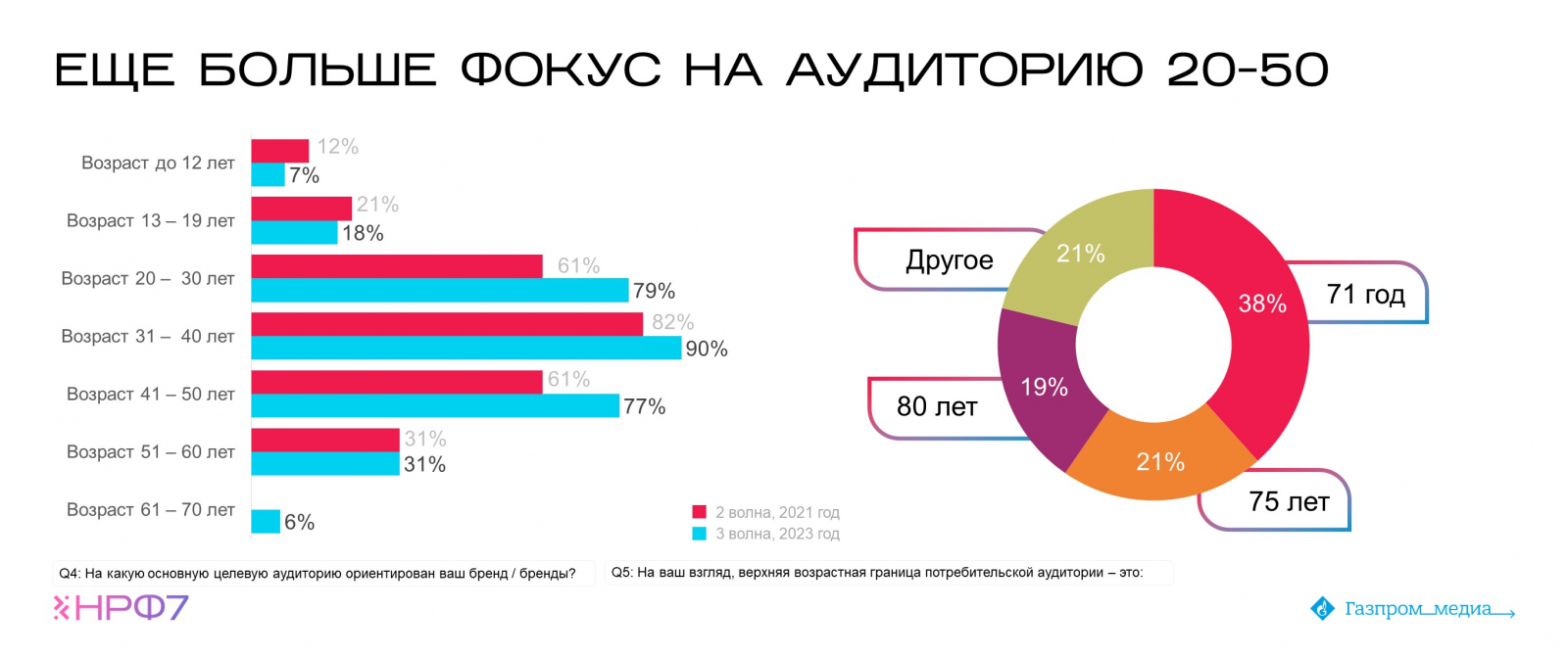 Большинство брендов по-прежнему рассматривают ядро целевой аудитории в диапазоне от 20 до 50 лет. Однако наблюдается смещение верхней возрастной границы с 65+ до 71 года.