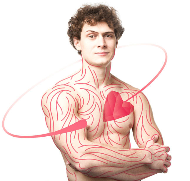 Знак - стилизованное изображение сердца, движущегося по орбите. Сложная структура поверхности подчеркивает рукотворность сердца-спутника. Логотип компонуется с фирменными персонажами, иллюстрирующими свободу, которую обретают люди благодаря аппарату вспомогательного кровообращения.