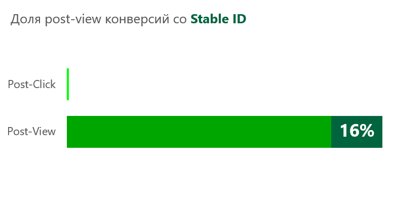 Обогатив полученные данные информацией о Stable ID, мы получаем дополнительный объем конверсий, атрибуцированных к нашей кампании. Доля таких целевых действий составила 16% от общего объёма.