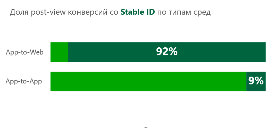 Но результат кардинально меняется, если пойти дальше и оценить количество post-view конверсий. В нашем кейсе их оказалось в 130 раз больше. И это только конверсии app-to-app без использования Stable ID.