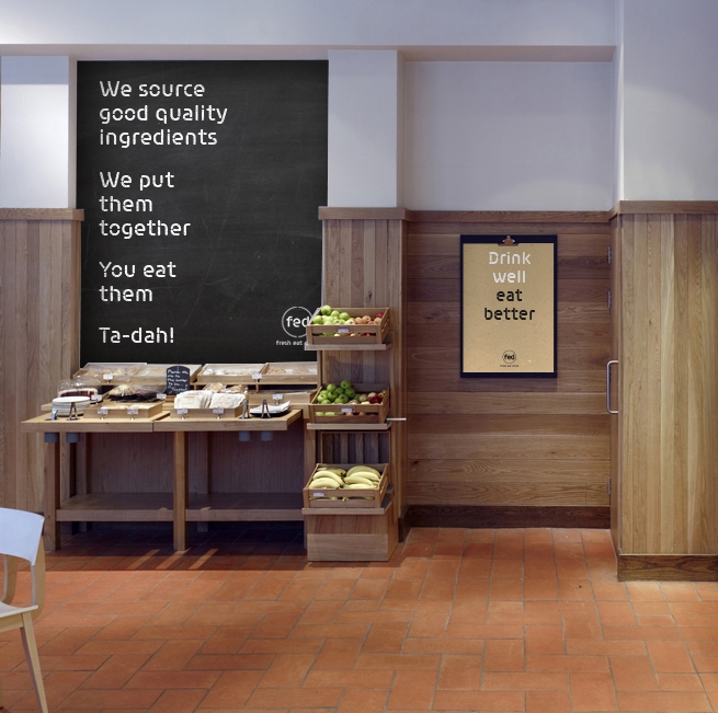 Разработанный бренд предлагает замену традиционной концепции ЕДЫ (EAT) концепцией НАСЫЩЕНИЯ (FED – от английского tobefed–быть сытым), которая призвана передавать радость от хороших продуктов, приятных современных интерьеров, отличной дружелюбной атмосферы.