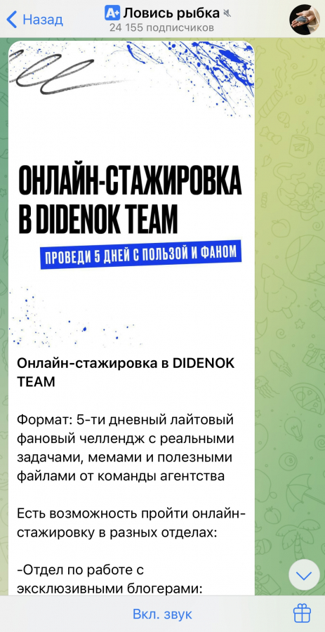 - Увеличить количество подписчиков в TG-канале DIDENOK TEAM.