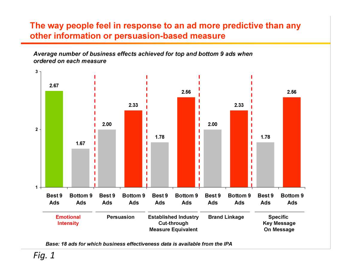 Если обратиться к статье моего оппонента и тем материалам, на которые г-жа Куликова ссылается - в данных IPA 2009 post test of 18 TV ads, действительно, речь идет о 18 рекламных роликах. Но это не вся база, а только по 9 лучших (best) и худших (bottom) роликов. Такого рода выделение «краев выборки» - обычный прием работы с ней, причем, «длина обрезки» выбирается произвольно: 9, 5, 3, общепринятой практики нет. Говорить о количественных исследованиях на базе 18 роликов даже не приходится.