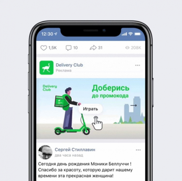 В этом году «ВКонтакте» внедрила новый формат интерактивной рекламы. Появилась возможность размещать объявления с игровой механикой прямо в новостной ленте. Функция ориентирована в первую очередь на пользователей смартфонов и отображается в приложении и мобильной версии сайта.