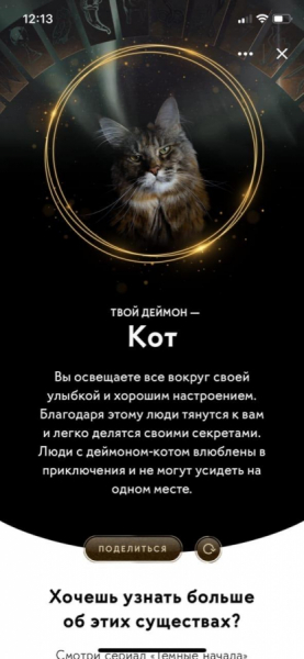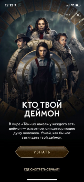 Специально к российской премьере онлайн-кинотеатр Wink разработал тест на базе VK Mini Apps. Любой желающий мог ответить на пять простых вопросов, после чего приложение определяло, какой из 20 деймонов подходит именно ему. Результатами можно было поделиться в историях и там же предложить друзьям пройти тест. Всем пользователям, запустившим приложение, предлагали специальную скидку на подписку в Wink.