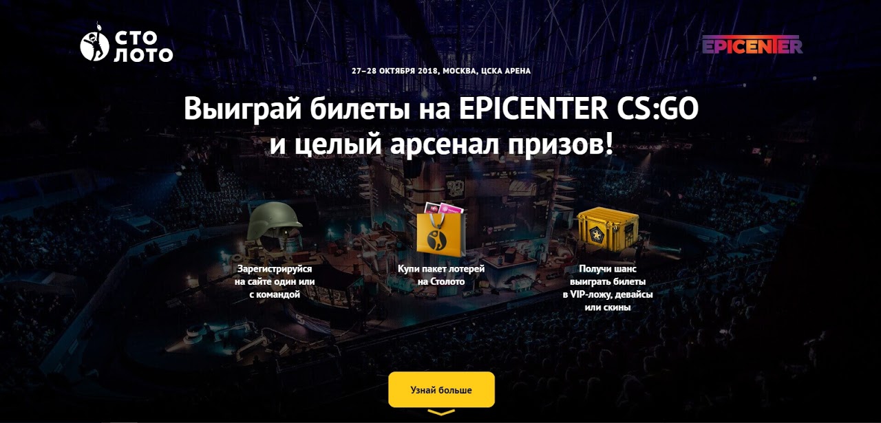 На предстоящем турнире EPICENTER лучшие киберспортивные составы мира будут бороться за призовой фонд в $300 000. Мероприятие пройдет в Москве 27−28 октября в ВТБ Арена. «Столото» разыграет среди посетителей турнира более сотни призов.