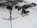 Отдельной задачей стала съемка на дрон. Сложность его использования на высокогорье связана с разряженностью воздуха. Чем выше вы поднимаетесь, тем больше винты теряют сопротивление воздуху, сокращается время полёта, повышается нагрузка на моторы. Поэтому необходимо делать корректировки в работе подвеса и менять винты на специальные, для высокогорья. К счастью, никаких технических проблем у команды не возникло.