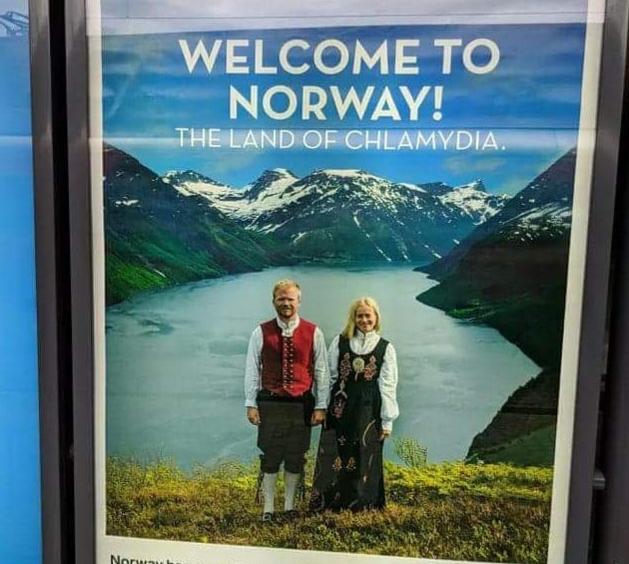 На вокзале Осло появилась реклама презервативов, в которой Норвегию назвали «страной хламидий». Огромные плакаты информируют туристов, что Норвегия имеет один из самых высоких показателей хламидиоза в Европе и призывает их «защищаться», сообщает The Local.