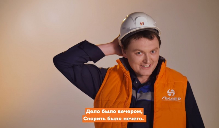 ФСК «Лидер» решила записать поздравление от компании — видео, на котором строители читают детское стихотворение авторства Михалкова.