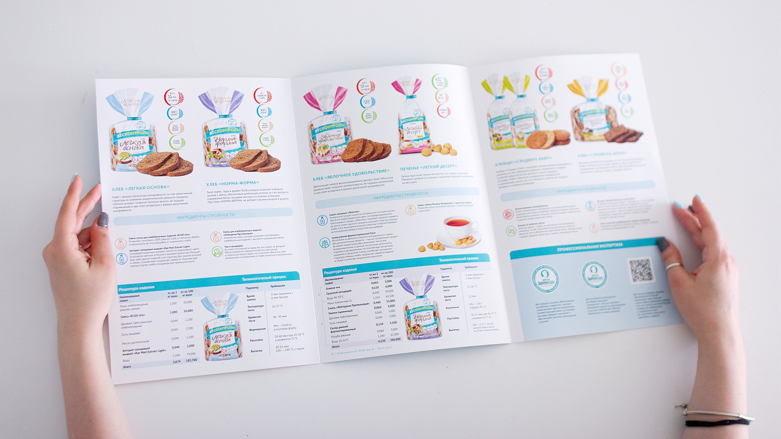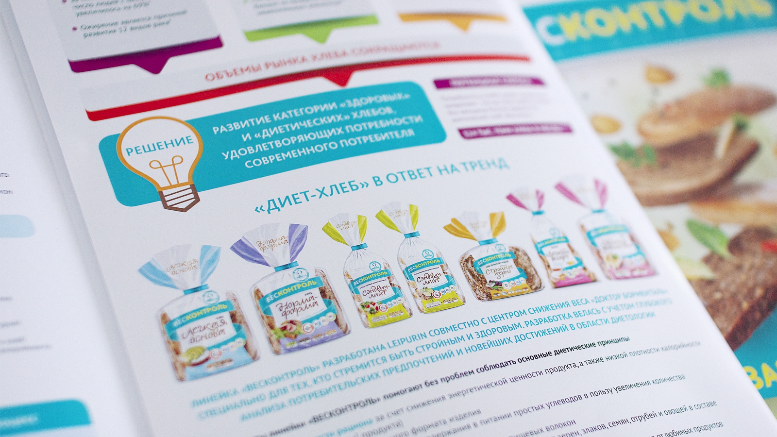 Основная мысль буклета: тренд на здоровое питание — это возможности, а не потери для хлебного рынка. Правильный хлеб и десерт, который не вредит фигуре, имеют большие перспективы в категории health & wellness.