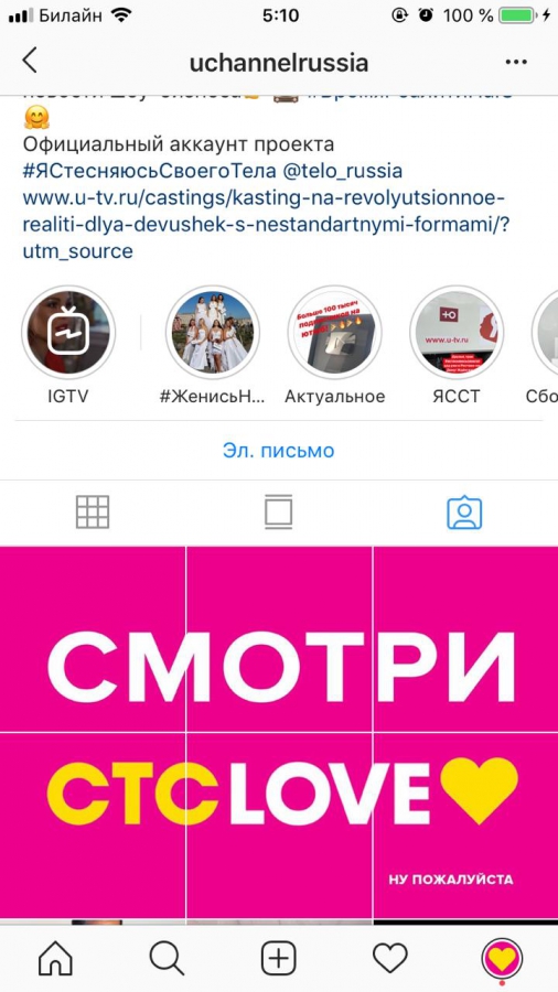 Команда маркетинга СТС Love создала дополнительный аккаунт в соцсети, в котором опубликовала несколько графических элементов, представляющих из себя в совокупности баннер с ласковой просьбой смотреть СТС Love. На каждой из картинок были отмечены официальные аккаунты телеканалов «Супер», «Ю», ТВ3, ТНТ4, 2X2, МУЗ ТВ, RU.TV и других.
