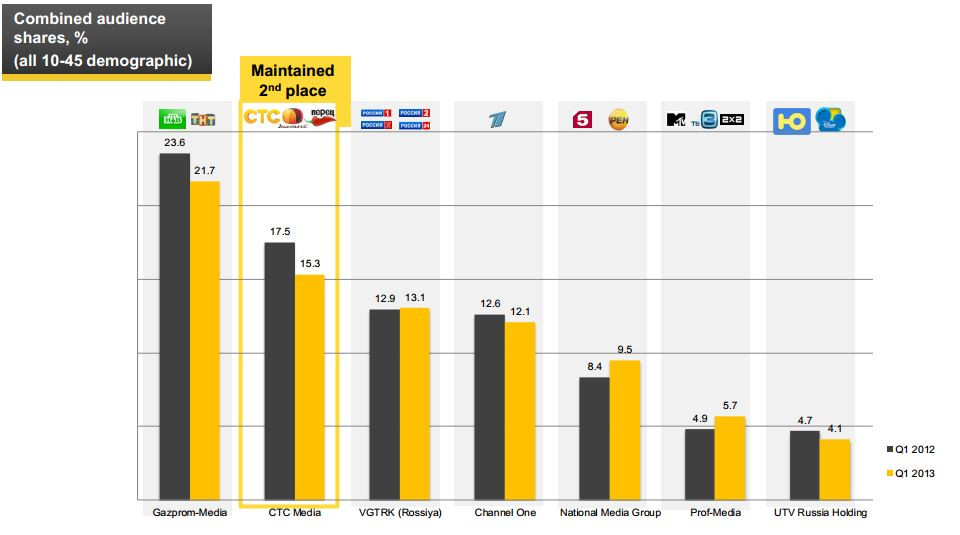В 2012 году «СТС Медиа» вкладывала значительные ресурсы в наращивание долей аудитории своих каналов, а в нынешнем планирует сфокусироваться на удержании лояльного ядра и улучшении демографического профиля аудитории.