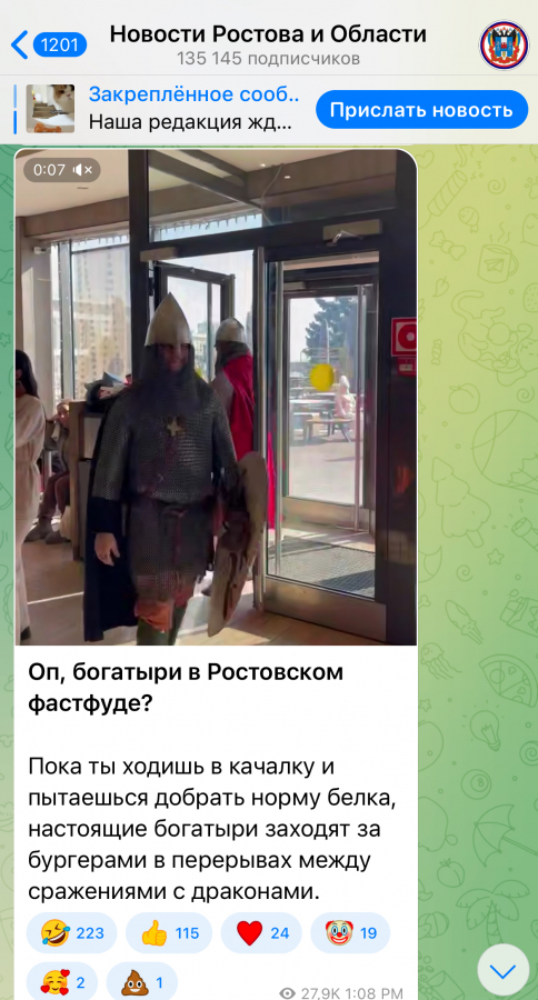 Богатырский прогрев продолжился вирусной акцией в Москве, Екатеринбурге, Ростове-на-Дону, Хабаровске, Казани, Иркутске и Перми, где былинные герои появились в знаковых городских локациях, в общественном транспорте, магазинах, ресторанах и на рынках, вызывая удивление местных жителей. Ролики с богатырским шествием стали вирусными и активно обсуждались как в местных, так и федеральных телеграм-каналах.