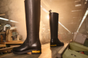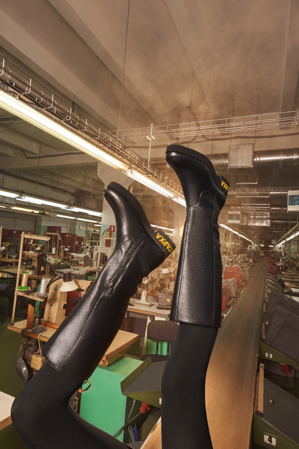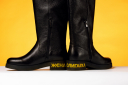 Это первая подобная пара в ассортименте обувного бренда. Как отметили дизайнеры, модель аккуратно подражает кирзовым сапогам — она выполнена из мягкой натуральной кожи c яловой подкладкой. Модельеры дополнили образ ироничной надписью, повторяющей название сериала.