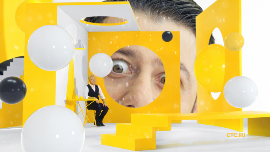 Таким образом, в новых ID звёзды СТС оказались внутри архитектурной инсталляции, которая состоит из геометрических фигур белого и жёлтого цветов с вкраплением чёрного.