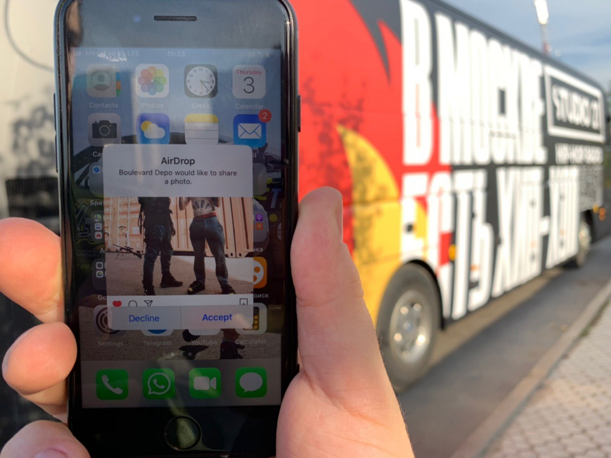 Кроме того, в местах остановок промоутеры рассылают из супербаса через AirDrop сообщение пользователям от популярного артиста Boulevard Depo с эксклюзивной фотографией со съёмок нового видео. Его совместный сингл с Pkhat и Yanix — AFK — и клип на него вышли в конце сентября и уже рвут все чарты.